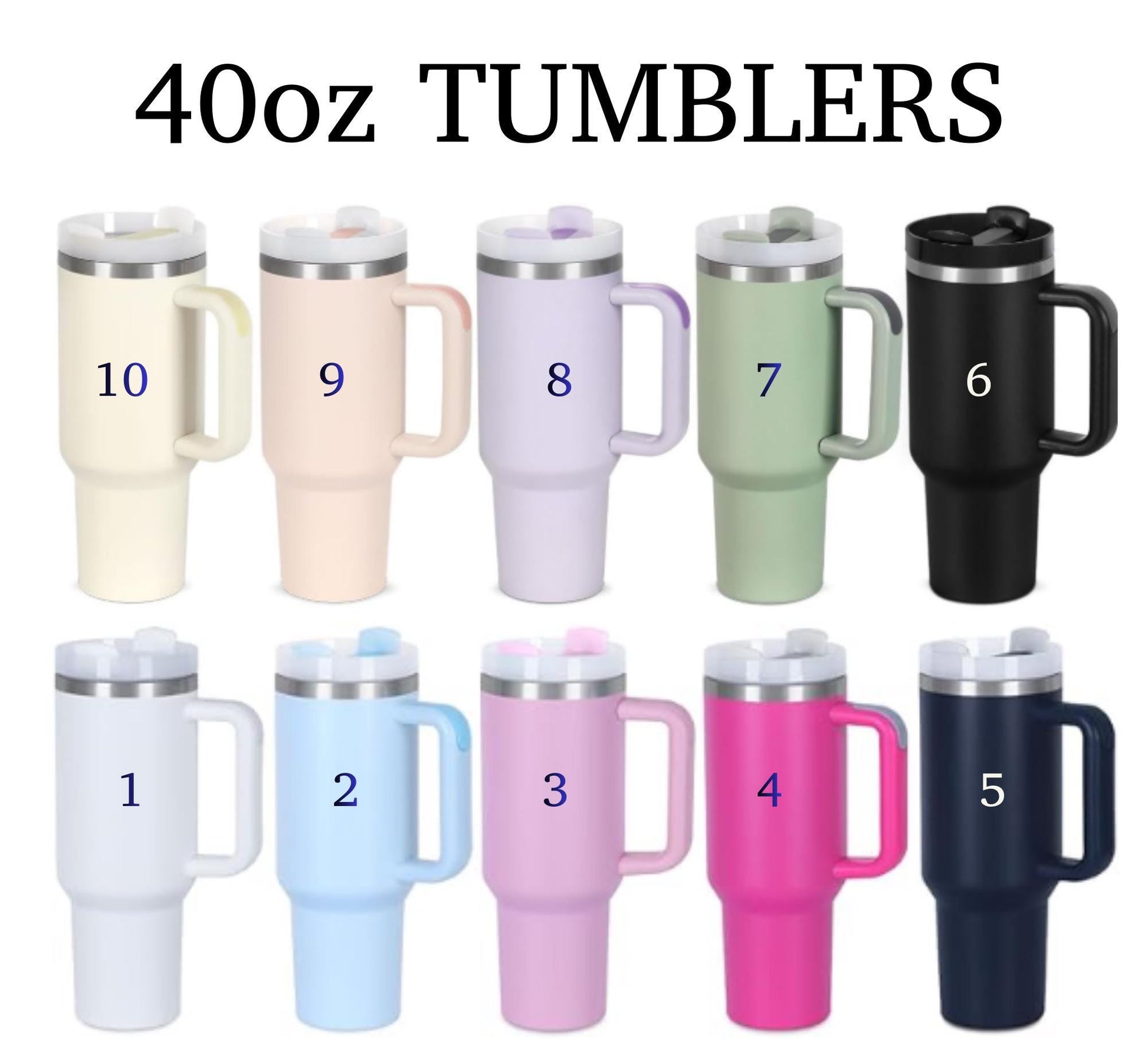 All tumblers are stainless steel, insulated, and include lid & straw.