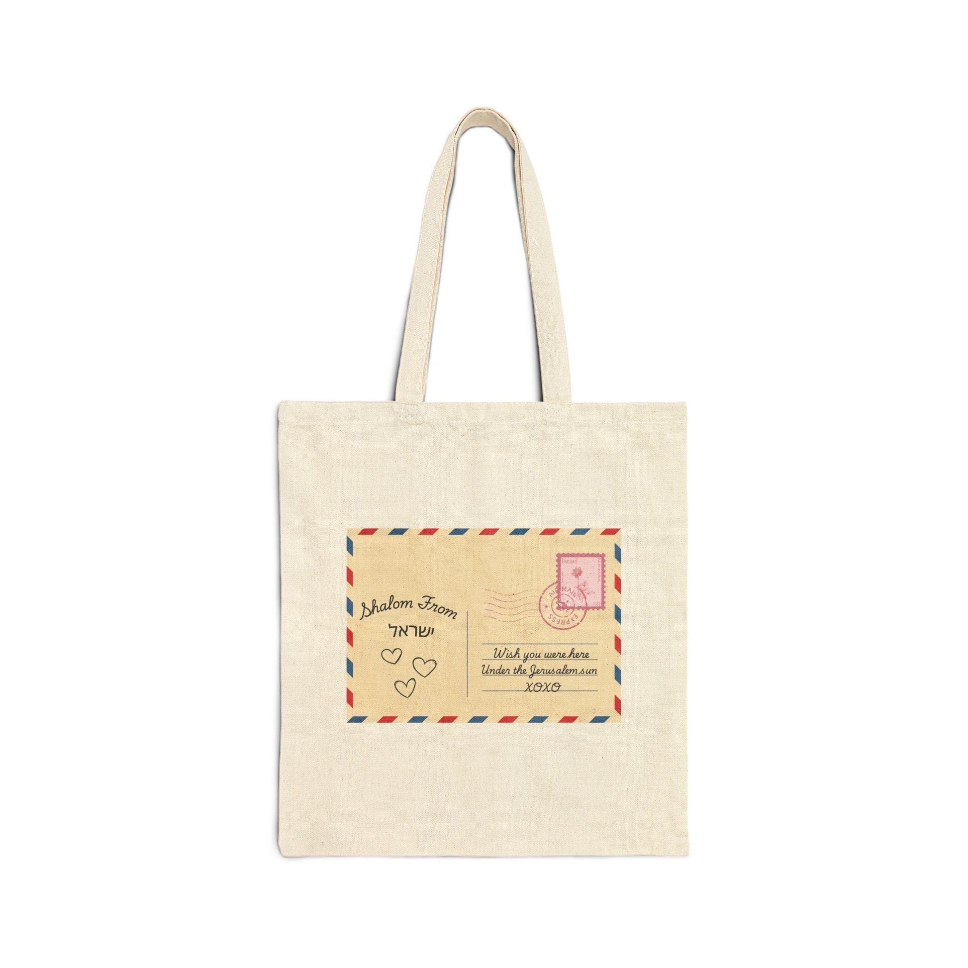 Israel Postcard Tote Bag | Vintage Air Mail Design, Romantic Quote