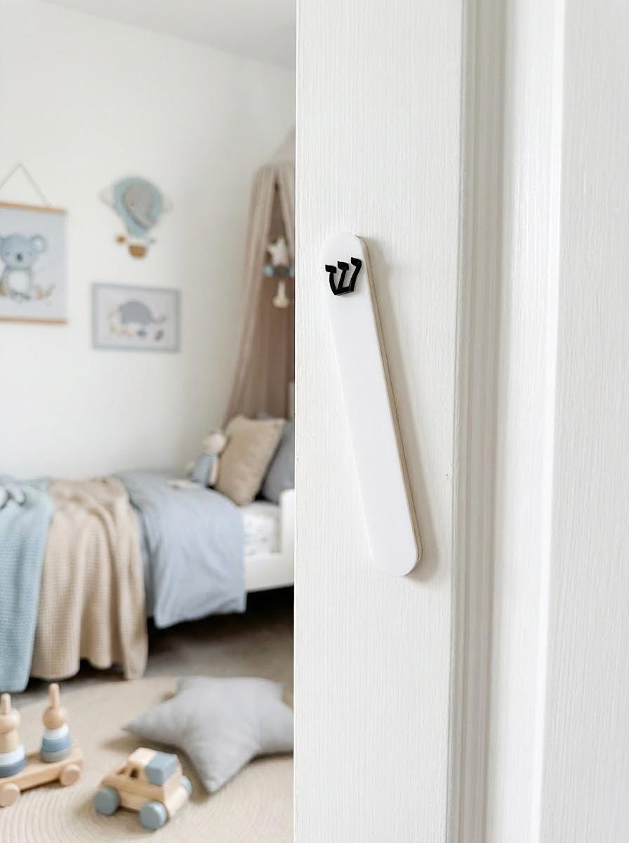 Crafted from durable 6mm layered acrylic, this mezuzah blends timeless Jewish tradition with a contemporary aesthetic — for nurseries, bedrooms, apartments, and modern homes.